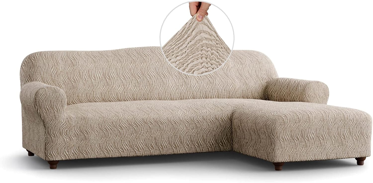 Amazon Com Paulato By Ga I Co Couch Cover Sofa Slipcover Furniture Cover Couch Slipcover Two Way Stretch Furniture Cover Made In Italy Jacquard 3d Collection L Shape Sofa Right Beige
